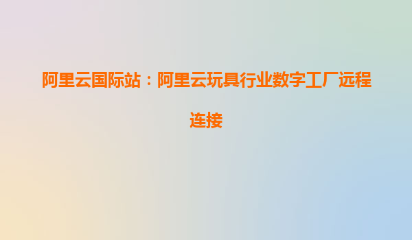 阿里云國(guó)際站:賦能玩具行業(yè)數(shù)字工廠遠(yuǎn)程連接新未來(lái)