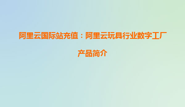 阿里云國際站充值:阿里云玩具行業(yè)數(shù)字工廠產(chǎn)品簡介