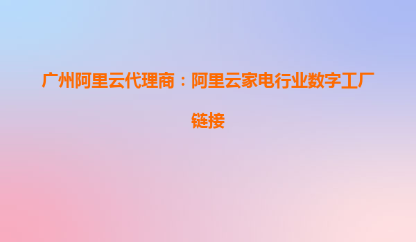 廣州阿里云代理商:阿里云家電行業(yè)數(shù)字工廠解決方案