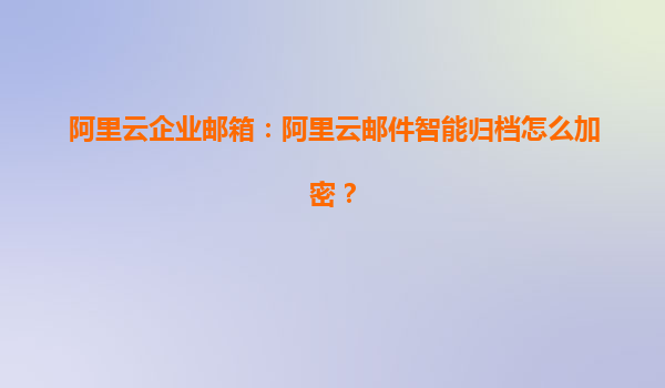 阿里云企業(yè)郵箱:郵件智能歸檔加密功能詳解