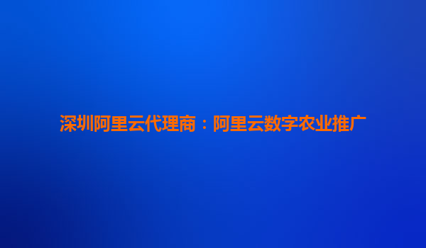 深圳阿里云代理商:阿里云數(shù)字農(nóng)業(yè)推廣