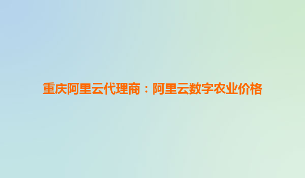 重慶阿里云代理商:阿里云數(shù)字農(nóng)業(yè)價(jià)格解析
