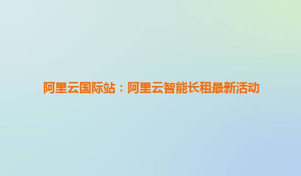 阿里云國際站:阿里云智能長租最新活動解析