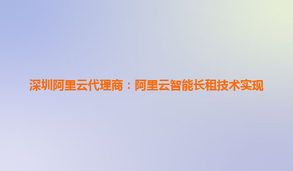 深圳阿里云代理商:阿里云智能長租技術(shù)實(shí)現(xiàn)