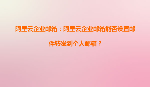 阿里云企業(yè)郵箱郵件轉(zhuǎn)發(fā)功能詳解