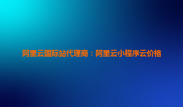 阿里云國際站代理商:阿里云小程序云價格詳解與優(yōu)勢解析