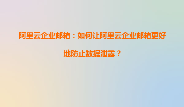 阿里云企業(yè)郵箱如何全方位防止數(shù)據(jù)泄露