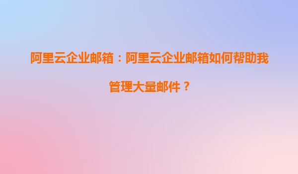 阿里云企業(yè)郵箱:高效管理海量郵件的專業(yè)解決方案
