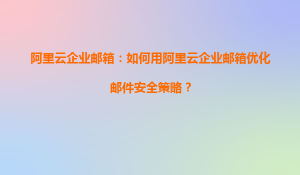 阿里云企業(yè)郵箱:如何用阿里云企業(yè)郵箱優(yōu)化郵件安全策略