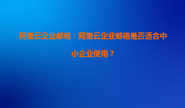 阿里云企業(yè)郵箱:阿里云企業(yè)郵箱是否適合中小企業(yè)使用?