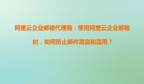 阿里云企業(yè)郵箱代理商:使用阿里云企業(yè)郵箱時,如何防止郵件泄露和濫用?
