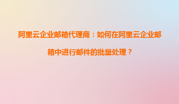阿里云企業(yè)郵箱代理商:如何在阿里云企業(yè)郵箱中進行郵件的批量處理?
