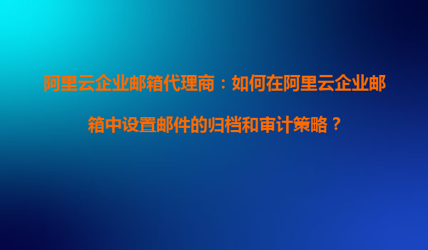 阿里云企業(yè)郵箱代理商:如何在阿里云企業(yè)郵箱中設(shè)置郵件的歸檔和審計策略?