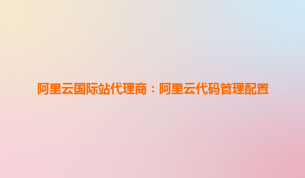 阿里云國際站代理商:阿里云代碼管理配置詳解