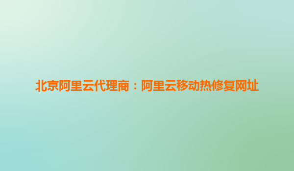 北京阿里云代理商:阿里云移動熱修復技術解析與優(yōu)勢