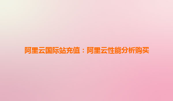 阿里云國際站充值:阿里云性能分析購買指南