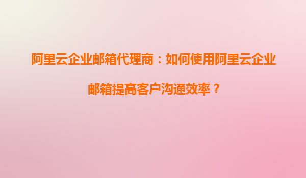 阿里云企業(yè)郵箱代理商:如何使用阿里云企業(yè)郵箱提高客戶溝通效率?
