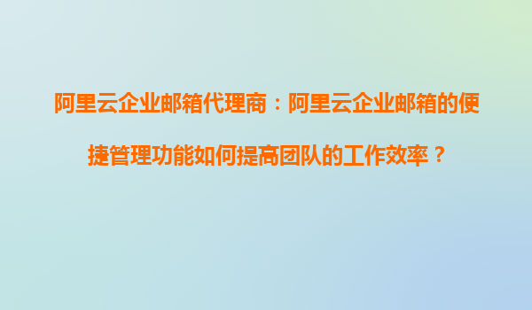 阿里云企業(yè)郵箱的便捷管理功能如何提高團(tuán)隊(duì)的工作效率