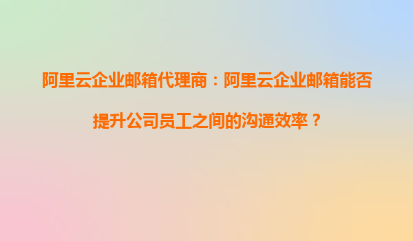 阿里云企業(yè)郵箱代理商:阿里云企業(yè)郵箱能否提升公司員工之間的溝通效率?