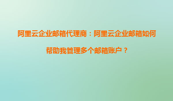 阿里云企業(yè)郵箱代理商:阿里云企業(yè)郵箱如何幫助我管理多個郵箱賬戶?