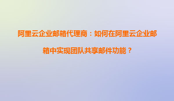 阿里云企業(yè)郵箱代理商:團(tuán)隊(duì)共享郵件功能的實(shí)現(xiàn)與優(yōu)勢(shì)