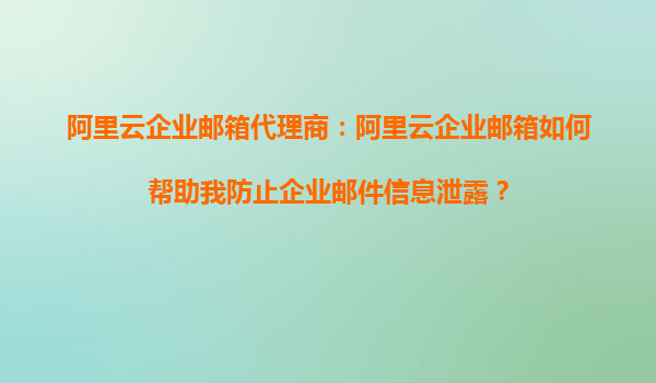 阿里云企業(yè)郵箱代理商:阿里云企業(yè)郵箱如何幫助我防止企業(yè)郵件信息泄露?