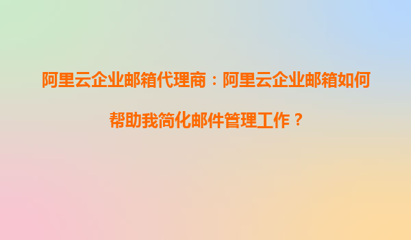 阿里云企業(yè)郵箱代理商:阿里云企業(yè)郵箱如何幫助我簡化郵件管理工作?
