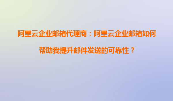 阿里云企業(yè)郵箱代理商:阿里云企業(yè)郵箱如何幫助我提升郵件發(fā)送的可靠性?