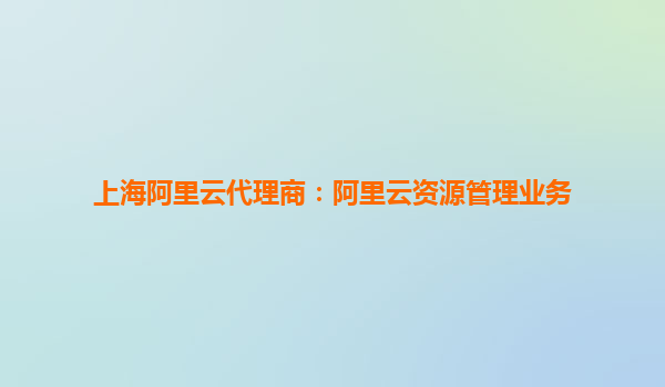 上海阿里云代理商:阿里云資源管理業(yè)務(wù)