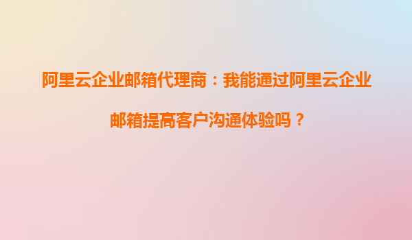 阿里云企業(yè)郵箱如何助力企業(yè)提升客戶溝通體驗(yàn)
