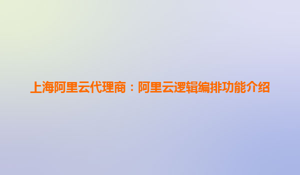 上海阿里云代理商:阿里云邏輯編排功能介紹