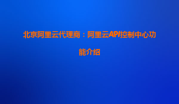 北京阿里云代理商:阿里云API控制中心功能介紹