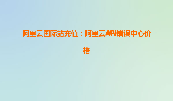 阿里云國(guó)際站充值與API錯(cuò)誤中心價(jià)格解析:一站式上云解決方案