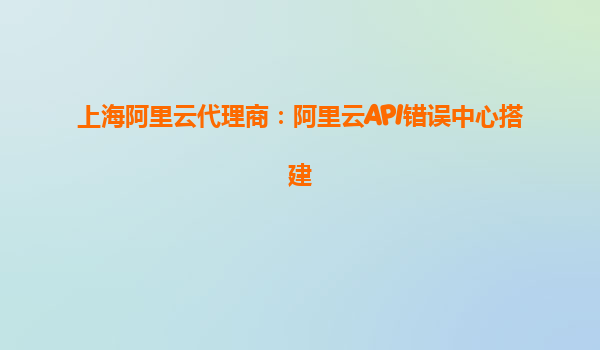 上海阿里云代理商助力企業(yè)搭建高效API錯(cuò)誤中心