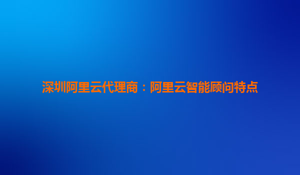 深圳阿里云代理商:阿里云智能顧問特點(diǎn)與優(yōu)勢(shì)剖析