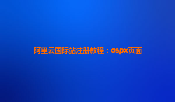 阿里云國際站注冊教程:ASPX頁面詳解與優(yōu)勢解析