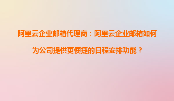 阿里云企業(yè)郵箱代理商:阿里云企業(yè)郵箱如何為公司提供更便捷的日程安排功能?