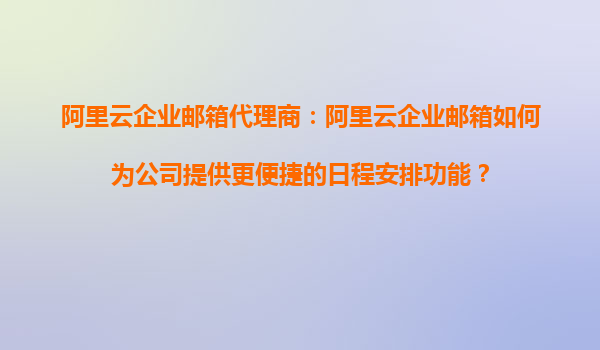 阿里云企業(yè)郵箱代理商:阿里云企業(yè)郵箱如何為公司提供更便捷的日程安排功能?