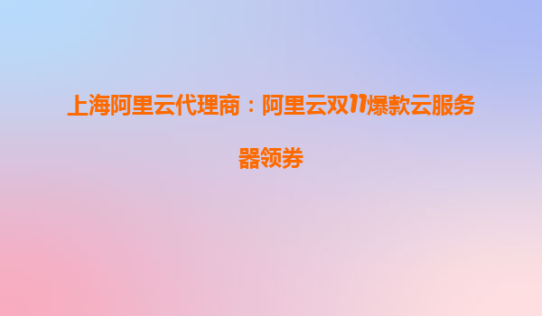 上海阿里云代理商:阿里云雙11爆款云服務器領券指南