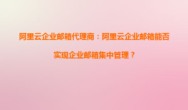 阿里云企業(yè)郵箱代理商:阿里云企業(yè)郵箱能否實現(xiàn)企業(yè)郵箱集中管理?