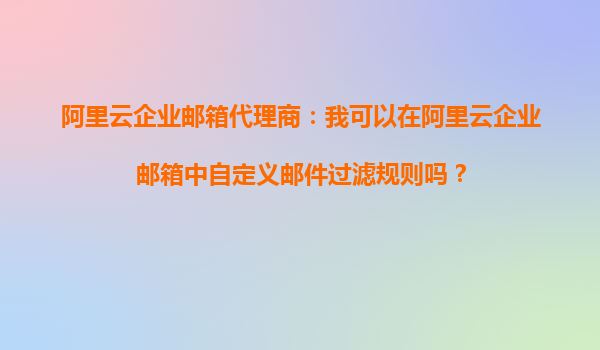 阿里云企業(yè)郵箱代理商:我可以在阿里云企業(yè)郵箱中自定義郵件過濾規(guī)則嗎?