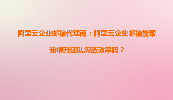 阿里云企業(yè)郵箱代理商:阿里云企業(yè)郵箱能幫我提升團(tuán)隊(duì)溝通效率嗎?