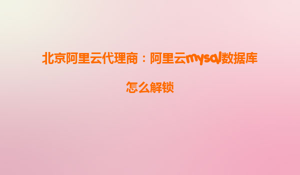 北京阿里云代理商:阿里云MySQL數(shù)據(jù)庫(kù)解鎖指南