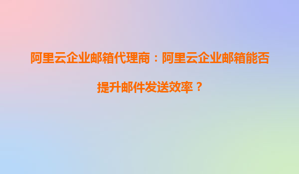 阿里云企業(yè)郵箱代理商:阿里云企業(yè)郵箱能否提升郵件發(fā)送效率?