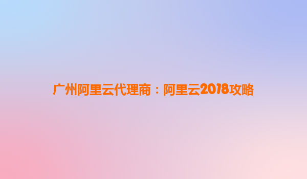 廣州阿里云代理商:阿里云2018攻略