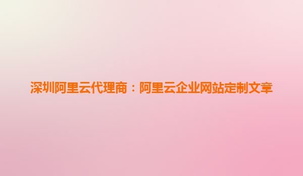 深圳阿里云代理商:阿里云企業(yè)網(wǎng)站定制解決方案
