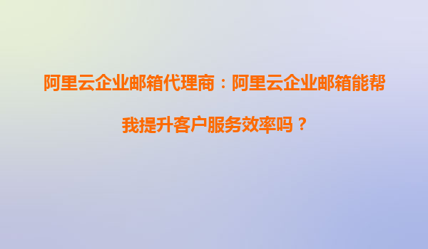 阿里云企業(yè)郵箱代理商:阿里云企業(yè)郵箱能幫我提升客戶服務(wù)效率嗎?