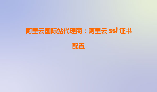 阿里云國際站代理商:阿里云SSL證書配置全攻略