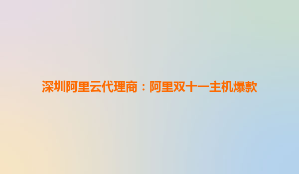 深圳阿里云代理商:阿里雙十一主機爆款來襲