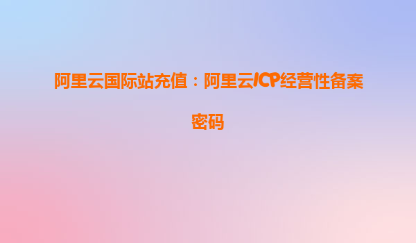 阿里云國際站充值:一站式解決ICP經(jīng)營性備案密碼需求